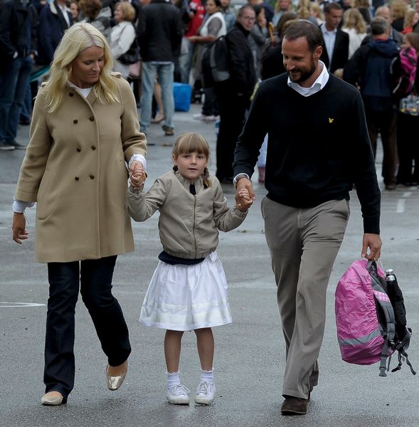 Ingrid Alexandra was accompanied by her parents, her grandfather King Harald and her grandmother Marit Tjessem.