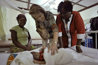 Oct. 19, 2010 - Monrovia, LIBERIA - 20101019 - BOMI COUNTY, LIBERIA: Princess Mathilde of Belgium (C) pictured during a visit at the Liberian Government County Hospital in Bomi County, Tuesday 19 October 2010, in Liberia. Princess Mathilde is on a 4 days visit to Liberia.