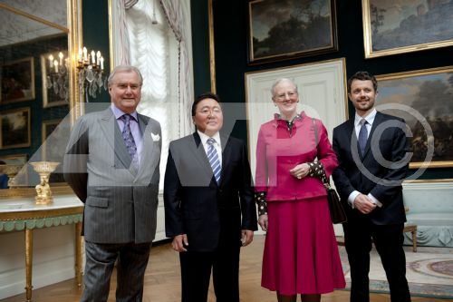 President Tsakhia Elbegdorj of Mongolia is received by Danish Queen Margrethe, Crown Prince Frederik and Prince Consort Henrik at the Amalienborg Palace in Copenhagen Friday October 9. 2010.