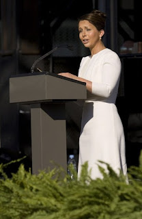 Princess Haya al Hussein, left, president of the Federation Equestre Internationale speaks while Kentucky Gov. Steve Beshear listens during the closing ceremonies of the World Equestrian Games in Lexington, Ky. , on Sunday, Oct. 10, 2010.