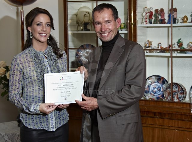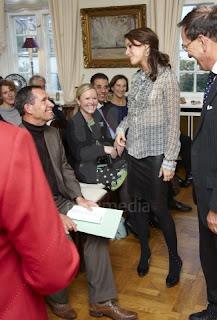 Princess Marie giving out the award Prix littéraire des Ambassadeurs at the Belgian Embassy in Copenhagen. The Princess is Patroness for the Organisation- 20101014