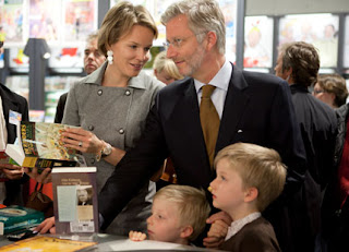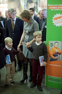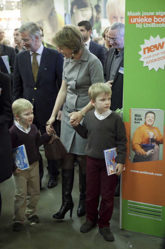 Prince Philippe and Princess Mathilde of Belgium with their children visiting the 'Boekenbeurs' (Book Fair) in Antwerp on November 10, 2010. The Antwerp Book fair is one of the biggest book event in Flanders. On the picture : Prince Philippe, Princess Mathilde, Prince Gabriel (R) and Prince Emmanuel (L)