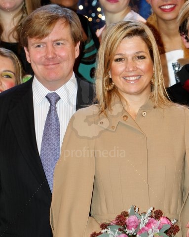 Prince Willem-Alexander and Princess Maxima of The Netherlands attend the jubilee show ''The Birthday of King Lodewijk the one one'' of youth theatre Hofplein in Rotterdam, The Netherlands, 12 December 2010. Players of the show are students of the Hofplein theatre school.