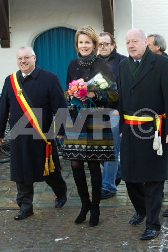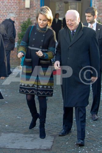 Princess Mathilde of Belgium (front) and mayor of Bruges Patrick Moenaert (back) pictured as they watch paintings, made by Albrecht Durer, during a visit to the exhibition 'Van Eyck to Durer" in the Groeningemuseum in Bruges, Friday 03 december 2010. The exhibition deals with the influence of the Flemish Primitives on the artists in the Holy Roman Empire.