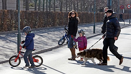 Crown Prince Frederik and Crown Princess Mary and children Prince Christian and Princess Isabella walking around in Copenhagen, February 12, 2011.