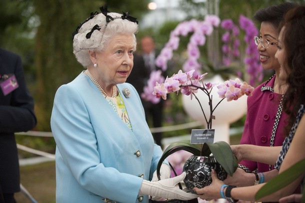 Britain's Queen Elizabeth II smiles as she visits the Chelsea Flower Show press and VIP day in London on May 23, 2011. The world reknown five-day annual event held by Britain's Royal Horticultural Society attracts Royals, stars and celebrities to see the manicured gardens and blooms in the grounds of the Royal Hospital Chelsea.