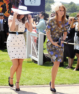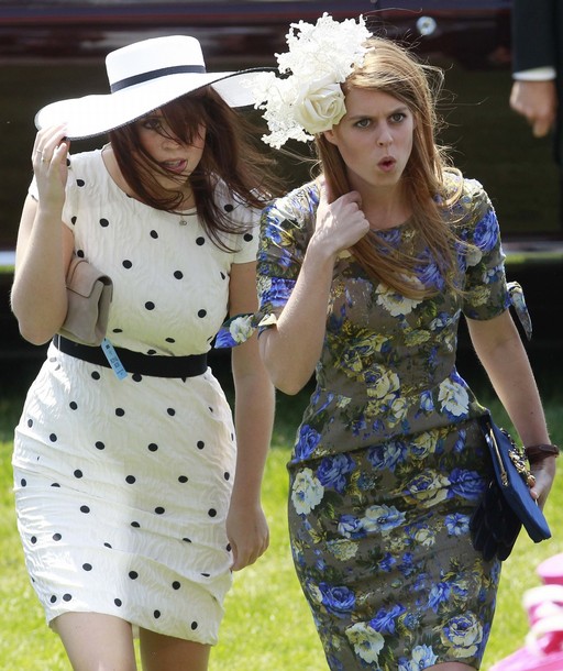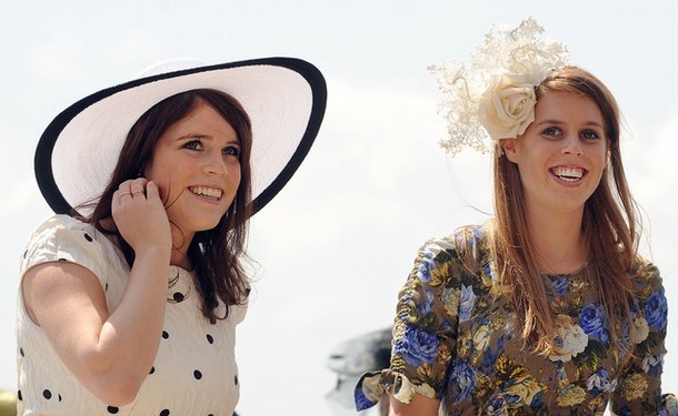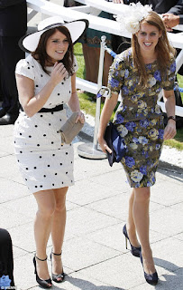 Britain's Princess Eugenie (L) and Princess Beatrice arrive at Epsom Racecourse in southern England June 4, 2011.