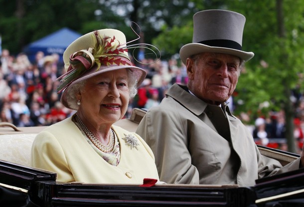 Britain's Queen Elizabeth and Prince Philip arrive for the fourth day of racing at Royal Ascot in southern England June 17, 2011.
