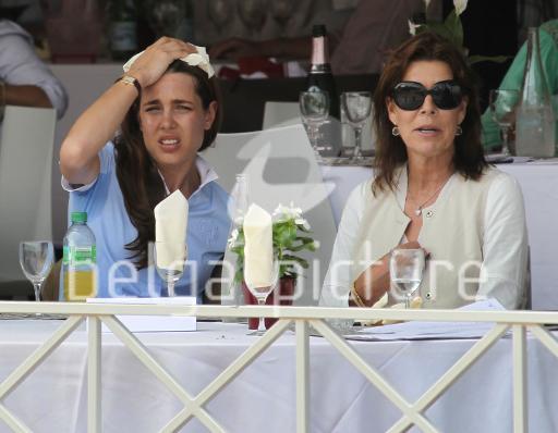 Charlotte Casiraghi (L) wipes her forehead as she speaks with her mother Caroline, Princess of Hanover,during the 16th International Monte-Carlo Jumping, on June 23, 2011 in Monaco.