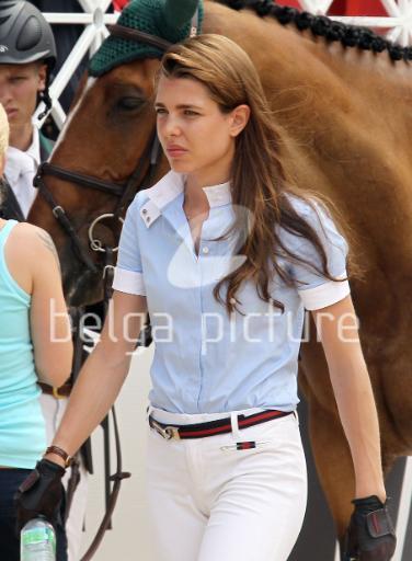 Charlotte Casiraghi walks after competing on her horse during the 16th International Monte-Carlo Jumping, on June 23, 2011 in Monaco. The event runs from June 23 to 25.